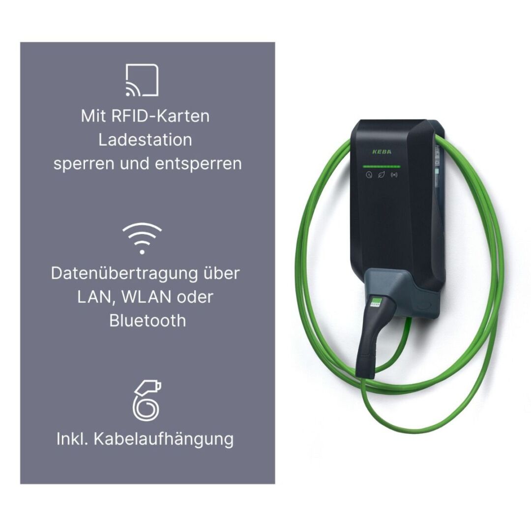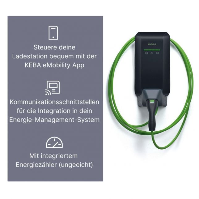 KEBA Wallbox 11kW Dienstwagen-Edition: 6m Typ2 Kabel, RFID, MID, LAN/WLAN, OCPP/UDP/Modbus TCP, AC&DC-FI-Schutz