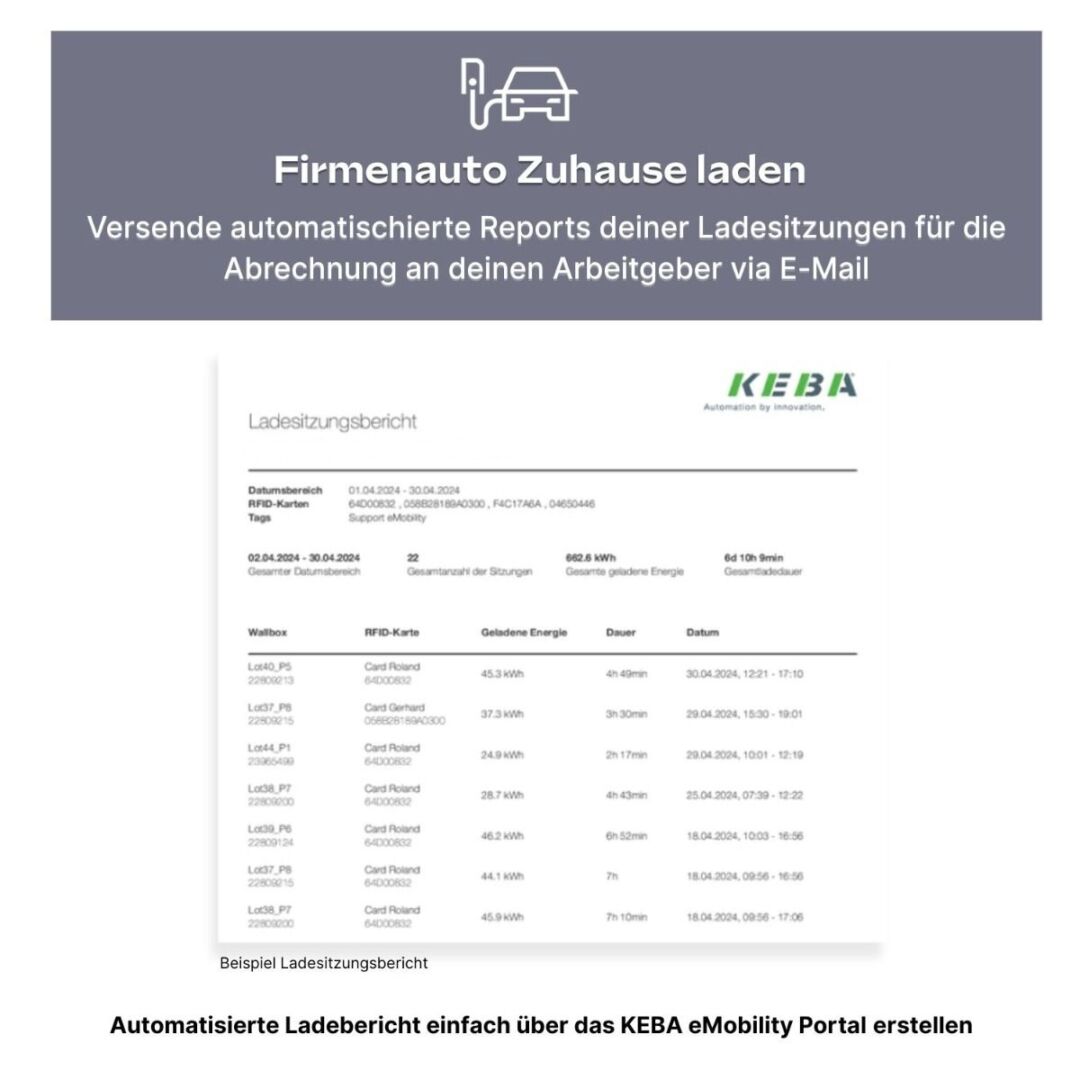 Sie unterstützt eine transparente Erfassung der Ladevorgänge und ist damit ideal für Firmenwagen im privaten